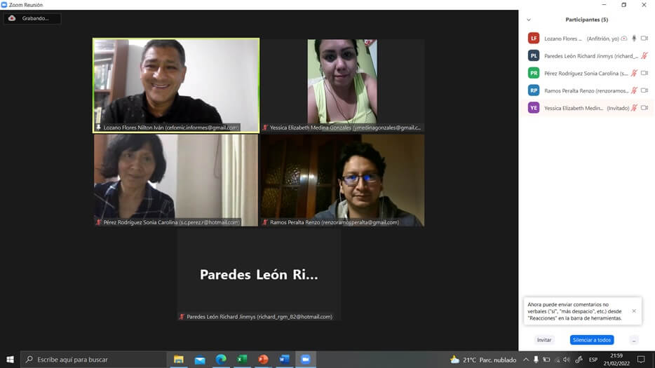 Lunes 21 de Febrero del 2022: 7.00 pm a 10.00 pm (hora de Lima – Perú)