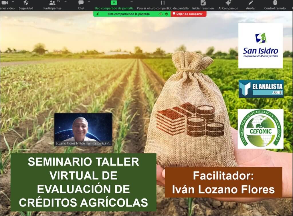 SEMINARIO TALLER VIRTUAL DE "EVALUACIÓN DE CRÉDITOS AGRÍCOLAS" dictado al personal de negocios de la COOPAC SAN ISIDRO (de Huaral, Perú)