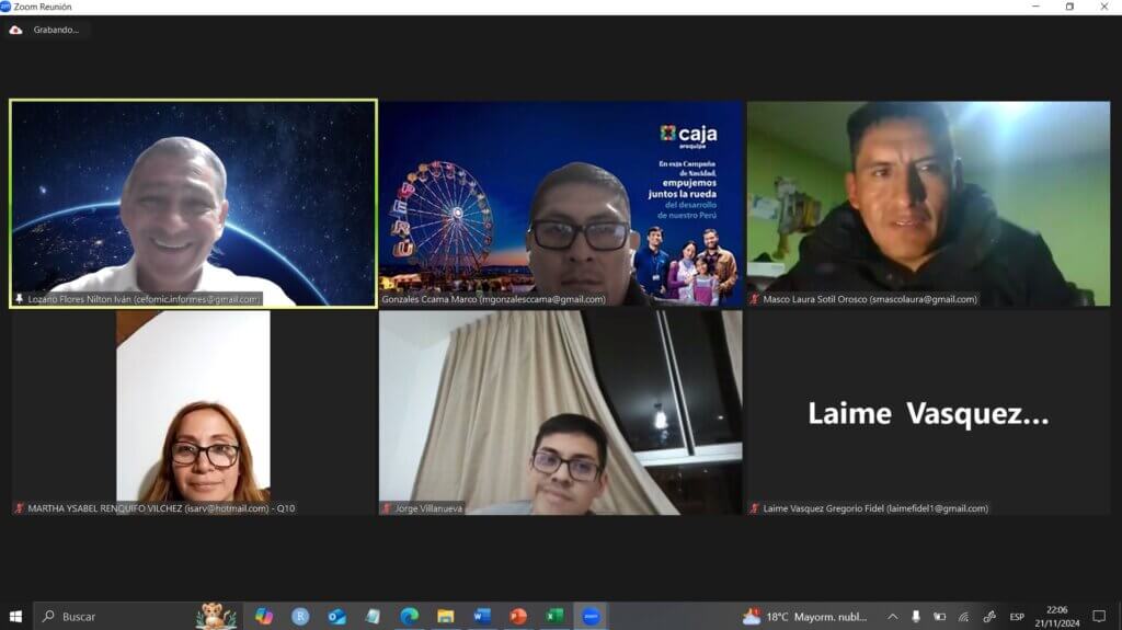 Martes 26 de noviembre del 2024: 7.00 pm a 10.00 pm (hora de Lima – Perú)